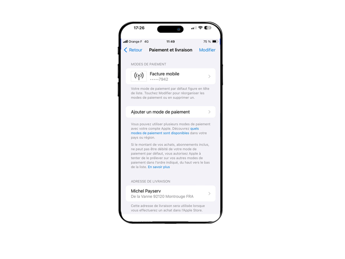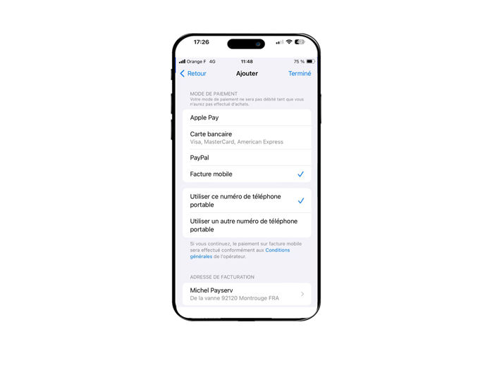 Seul le numéro du mobile de l’iPhone peut être activé sur le compte Apple du même iPhone. Le paiement sur facture depuis un terminal Apple est disponible avec tous les forfaits Orange et Sosh (sauf les forfaits bloqués et les mobicarte). Pour des mineurs ou non titulaires, vous pouvez activer le paiement sur facture de leur ligne mobile Orange/Sosh tout en limitant le plafond de dépenses selon leurs besoins depuis l’espace clients Sosh.