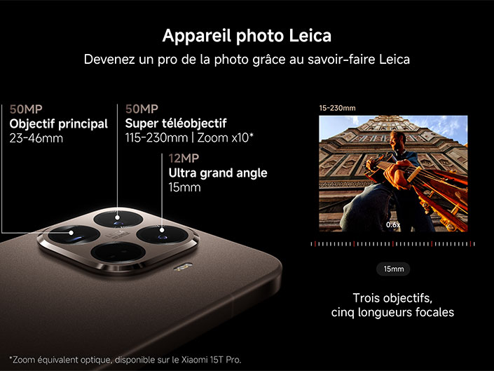 Avec son triple appareil photo Leica, le Xiaomi 15T Pro transforme chaque instant en une prise de vue digne d’un professionnel. De l’ultra grand angle immersif au super téléobjectif x10, en passant par un objectif principal d’exception, vous couvrez toutes les situations avec une qualité irréprochable.